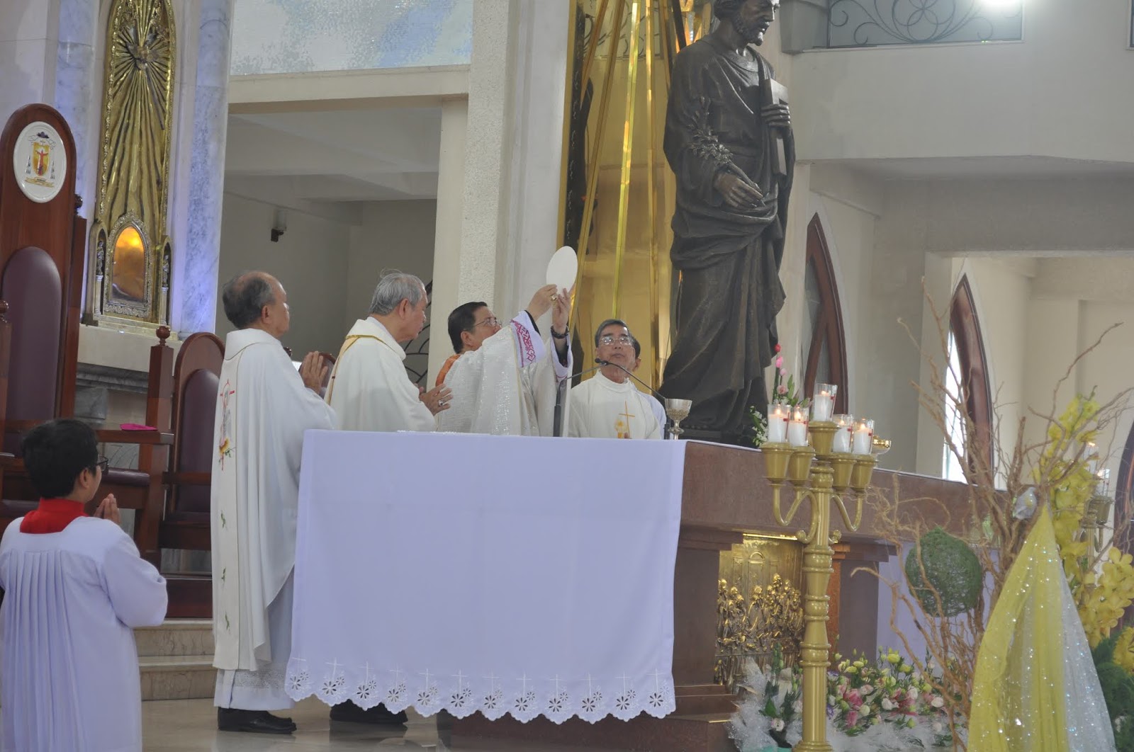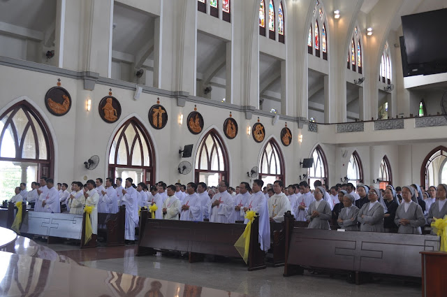Thánh lễ ngày hôm nay cho chúng con nhìn lại một chặng đường gian khó mà các Ngài trải qua, đã Yêu rồi làm, một sự kết nối kỳ diệu từ Đức cha Giuse Phạm Văn Thiên, Đức cha Luy Hà Kim Danh, Đức cha Phêrô Trần Đình Tứ, Đức cha Giuse Nguyễn Tấn Tước- Giám mục đương nhiệm GP chúng con- qua bao bước thăng trầm lịch sử mà ngày hôm nay 29-4-2019, đã 44 năm giải phóng miền Nam, chấm dứt chiến tranh, Giáo Hội Công giáo địa phương từng bước tiến lên cùng với lòng mến đã nhân rộng Nước Chúa, Những ngôi thánh đường mới được cung hiến, ngày Chúa nhật có biết bao thánh lễ! Bà con giáo dân dự lễ đông đảo và sốt sắng.