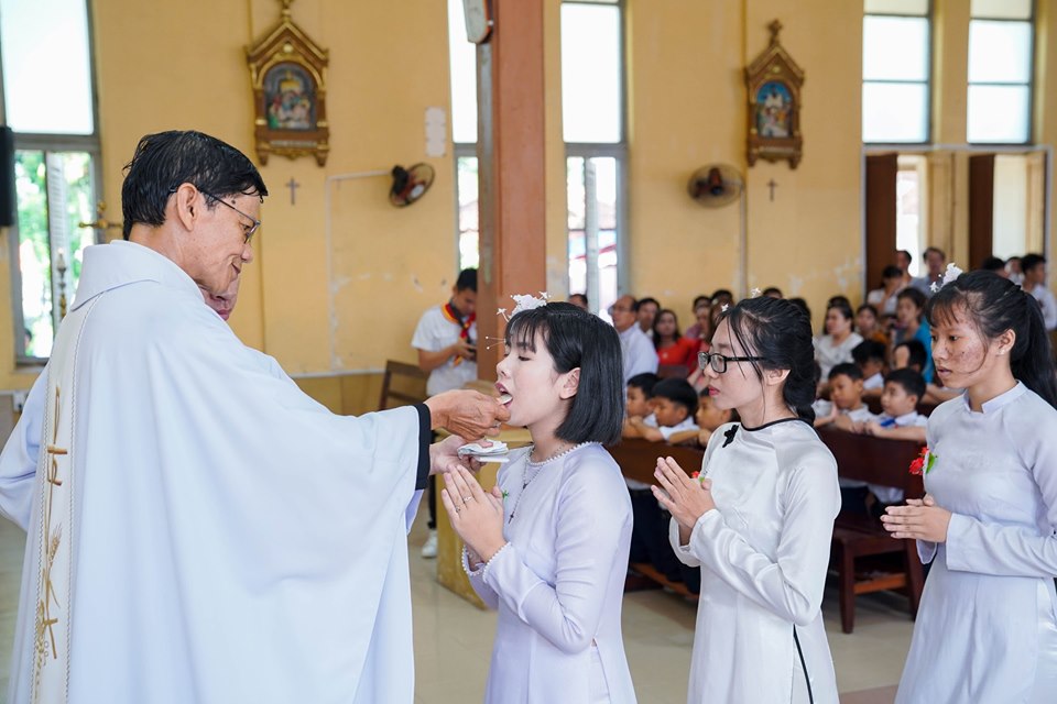 Xin Chúa chúc lành cho những giọt mồ hôi của bậc phụ huynh vất vả lao nhọc, nhành hoa mà các em đang mang hôm nay, là một sự đánh đổi, các em hạnh phúc trong Chúa.