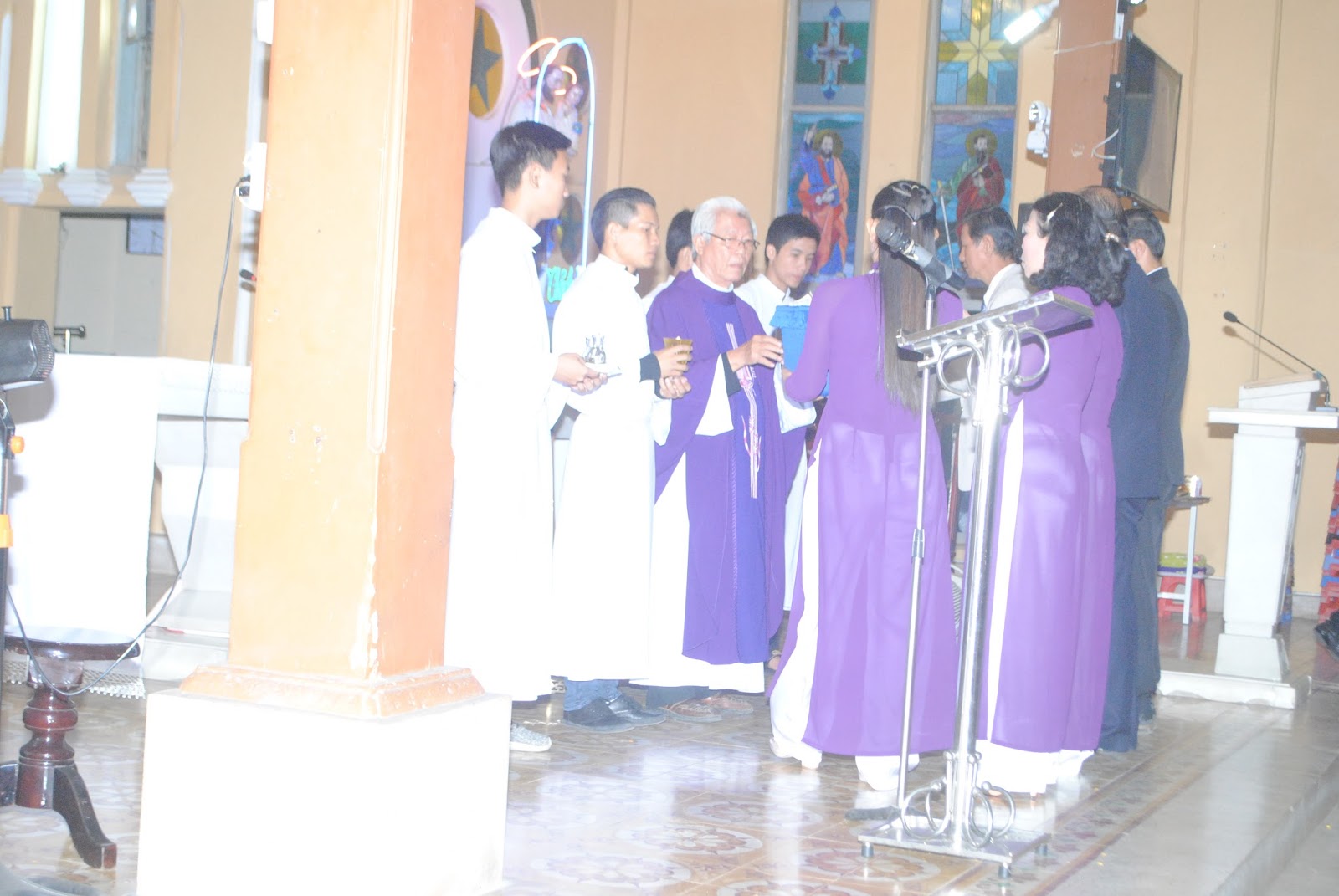Thánh lễ kết thúc vào lúc 6g30 trong bầu không khí trang nghiêm. Các ban ngành đoàn thể đến chúc tuổi cha, thăm dì phước, và chúc nhau một năm mới bình an.