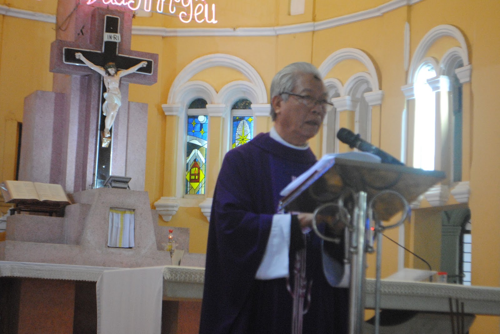 Trong bài giảng lễ cha sở Micae nhắc đến những lỗi lầm của nguyên tổ Ađam và Evà, Mai sen đã nghi ngờ Chúa trong sa mạc, lỗi lầm của Vua Đavít . . .Nhưng Thiên Chúa vẫn luôn chờ đợi và đón nhận con người, như người cha hiền luôn thương yêu và xót xa khi thấy con cái vấp phạm. Vì yêu, Chúa đã mặc lấy thân phận con người, chấp nhận cái chết khổ đau để cứu chuộc loài người.